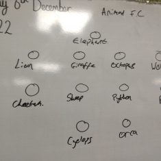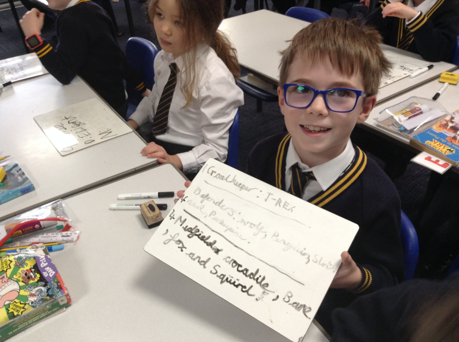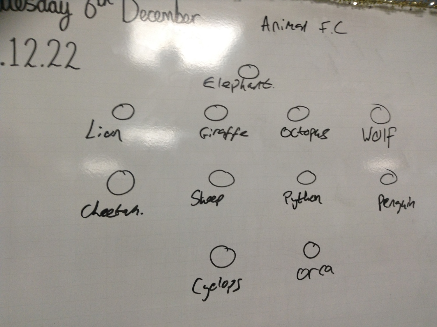 December 2022 – 3R thinking about teamwork and designing their own football team with animals